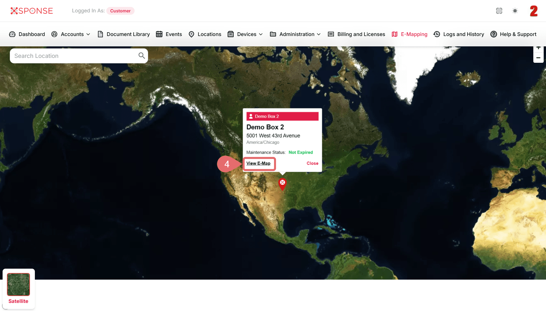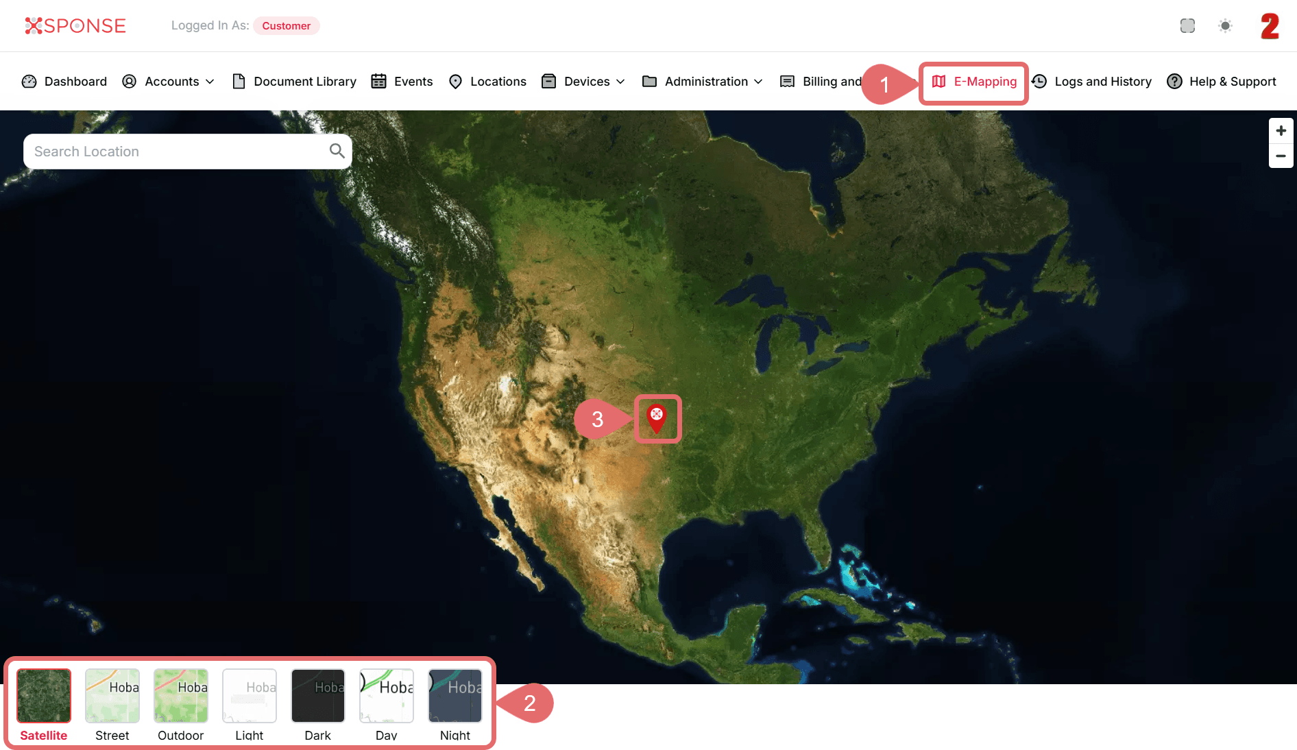 - (Optional): Click Satellite in the lower-left corner of the map and select one of the available map styles: