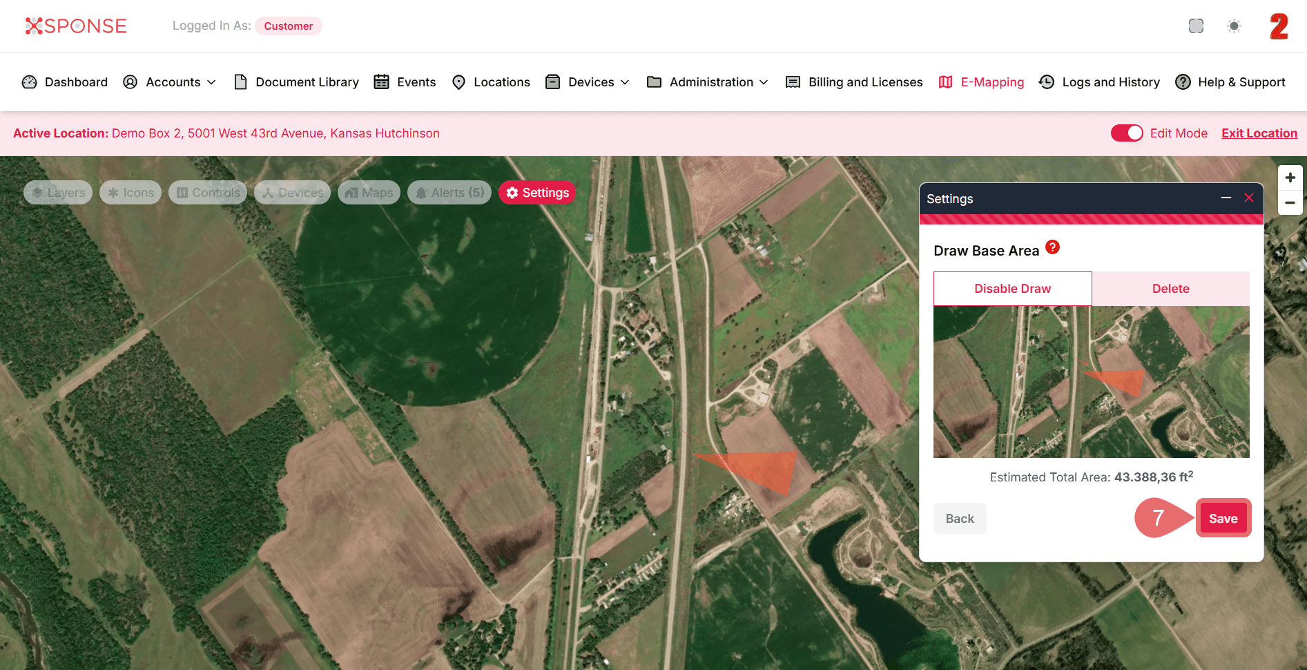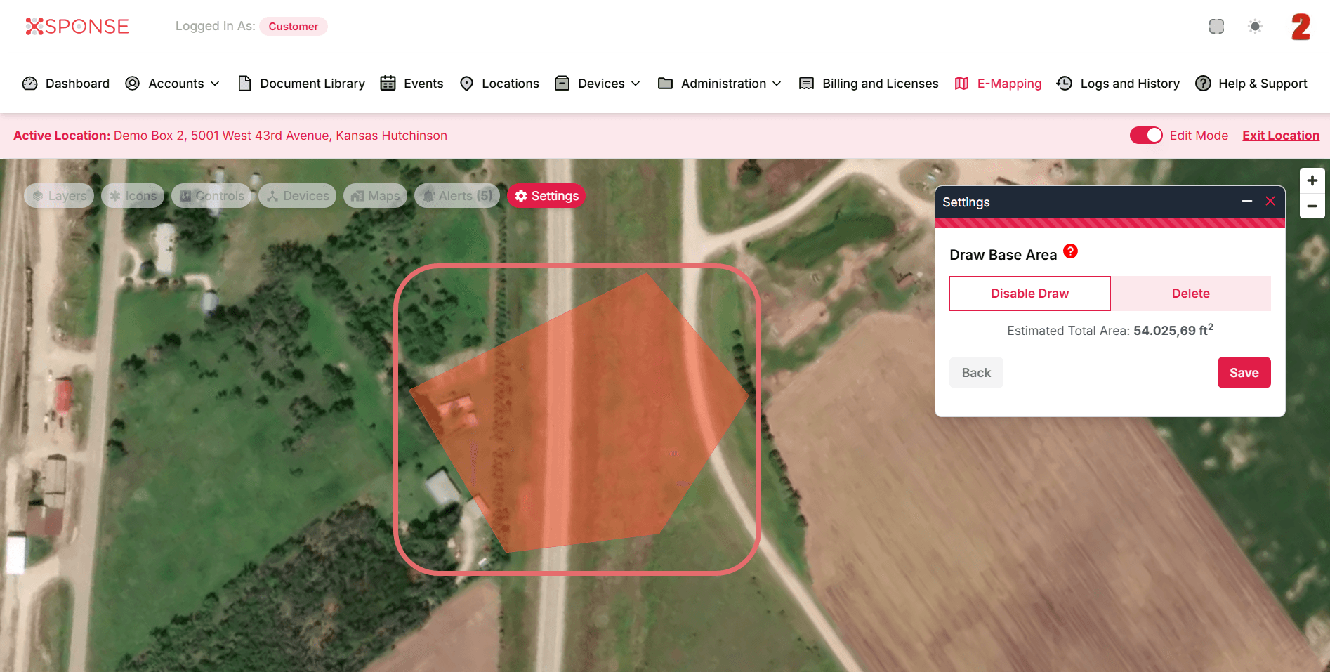 - Draw Base Area: Redraw or adjust the zone by dragging points on the map.